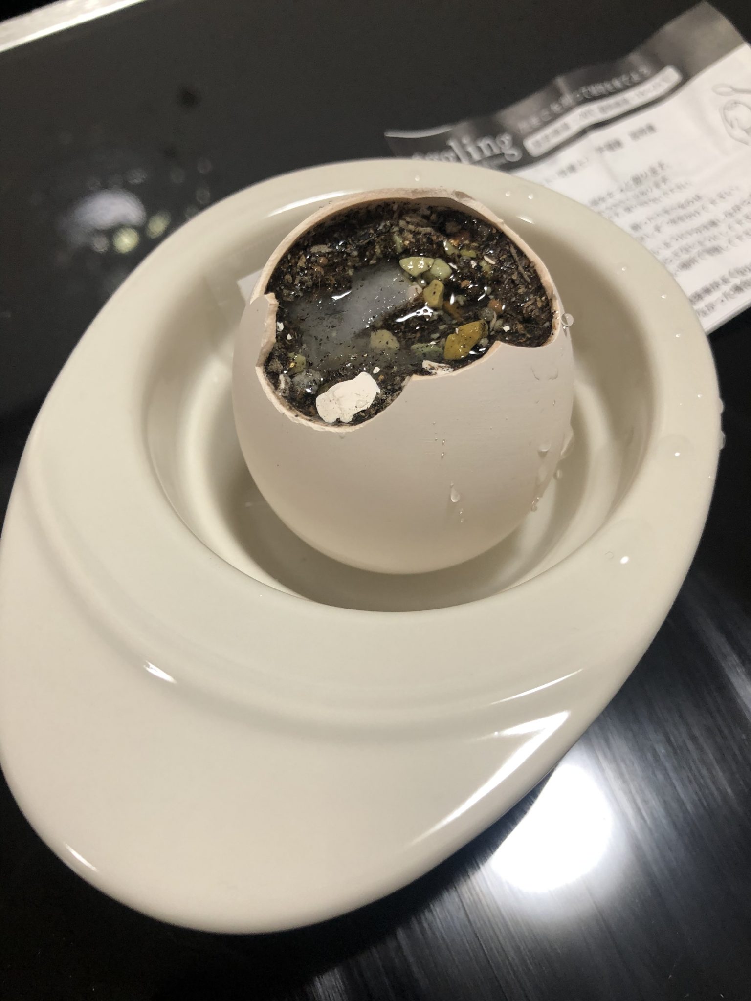 たまごの上を少し割るとー、