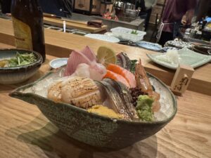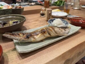 晩喰場というお店で、囲炉裏でお魚を出してくれるお店です^ – ^