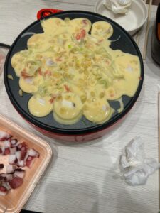 昔バイトでたこ焼きを作っていたので、生地から作りました^ – ^
