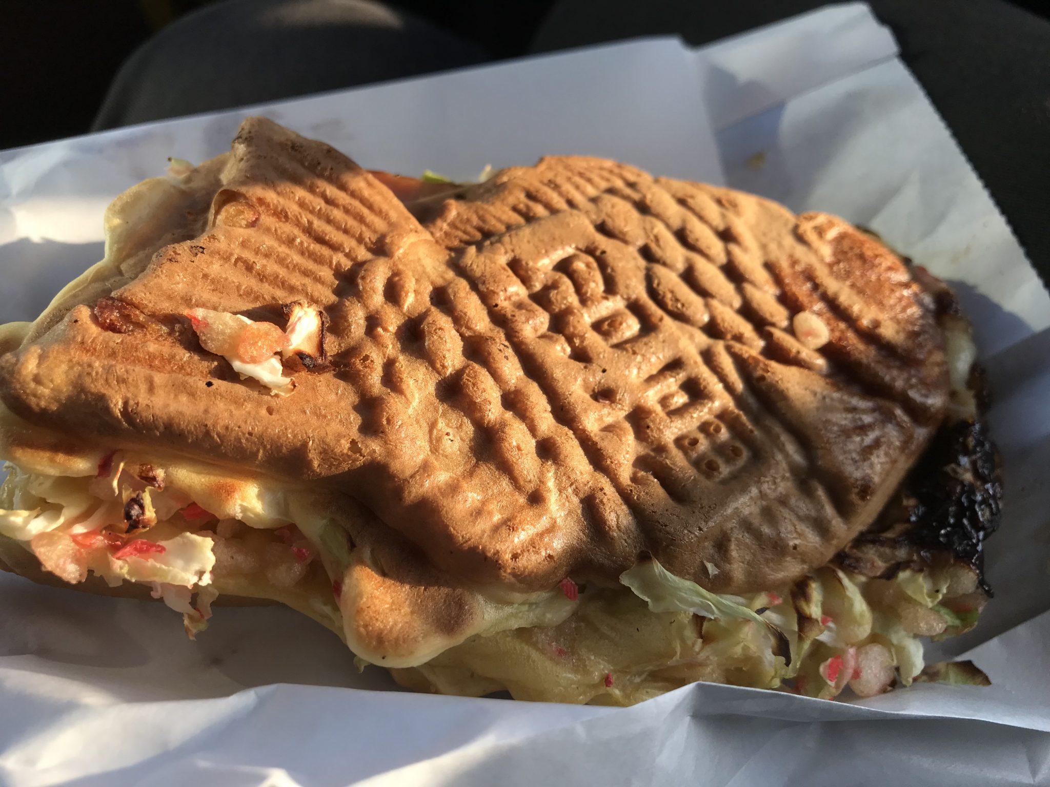 しかもめっちゃうまい!手で持って食べられるお好み焼きそのもの^ – ^