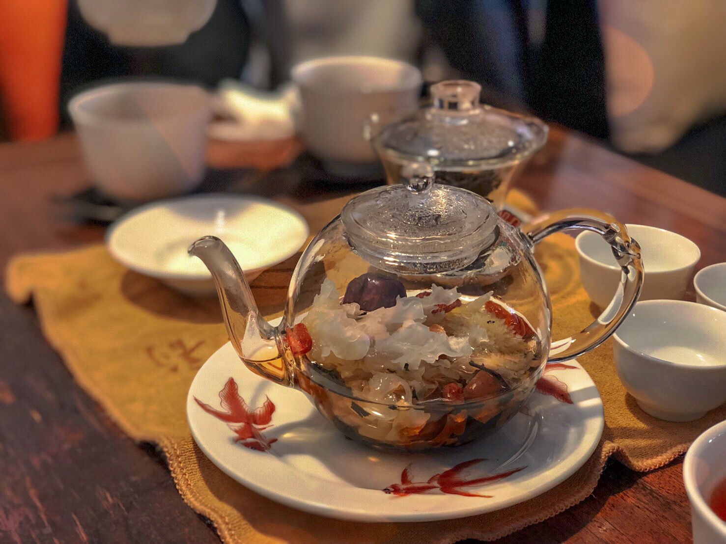 八宝茶(漢方のような味で、体に良く、眼労や胃腸に効くそう)で、