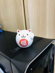 サトウの自宅のパソコンにはいつも福を呼ぼうとしている猫がいます