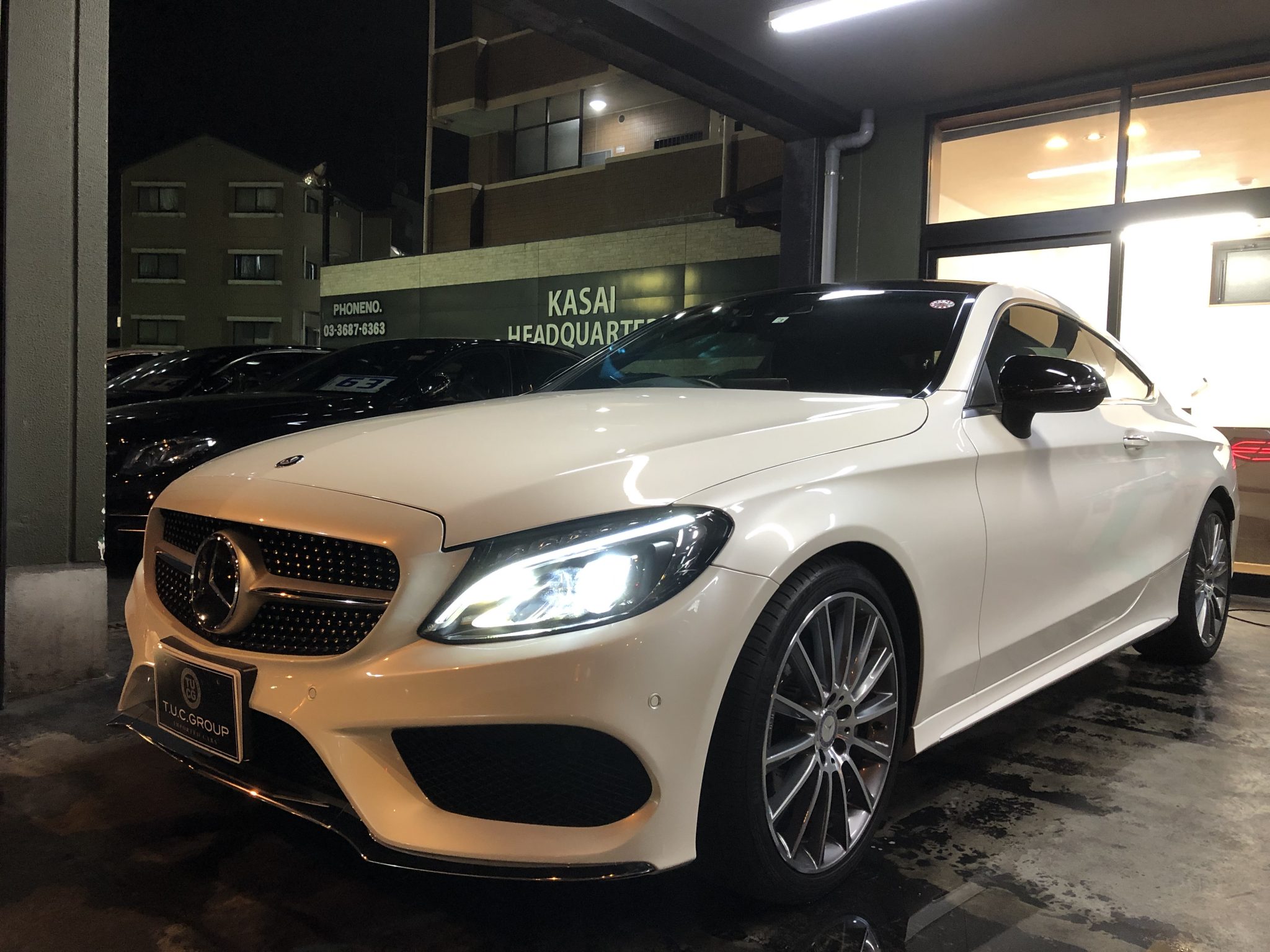 今回ご紹介するお車はこちら! C180クーペ スポーツプラス エクスクルーシブ&レーダーセーフティーPKG!! AMGエアロを纏ったスポーティ且つスタイリッシュな迫力のエクステリアに ダイヤモンドホワイトのボディー