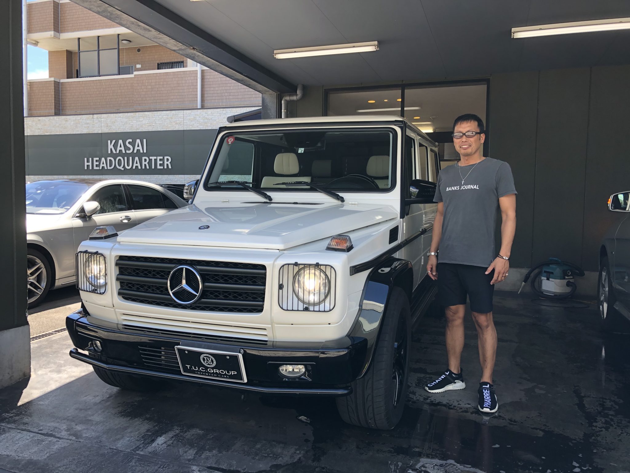 本日ご紹介するお車はこちらっ! メルセデスベンツを代表する本格派SUV G550ロング エディションセレクト 専用インテリア&エクステリアに加えバンパーガードやAMGマフラー、 AMG20インチアルミホイールを装備、 各種